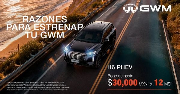 Vive la movilidad híbrida enchufable con el Haval H6 PHEV, el SUV que combina potencia, eficiencia y tecnología de punta. Aprovecha un bono de hasta $30,000 MXN o financiamiento a 12 meses sin intereses. Innovación, confort y el respaldo de GWM para que disfrutes cada kilómetro.