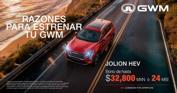 Aprovecha las ventajas del Haval Jolion HEV, el SUV híbrido que combina diseño moderno, gran eficiencia y tecnología avanzada. Por tiempo limitado, recibe un bono de hasta $32,800 MXN, financiamiento a 24 meses sin intereses y 0% comisión por apertura. Rendimiento, ahorro y estilo para disfrutar cada viaje.