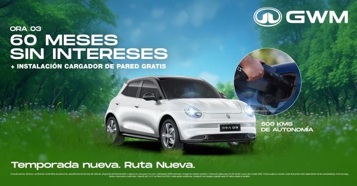 Vive una nueva temporada con la movilidad eléctrica del ORA 03, el vehículo que te ofrece hasta 500 km de autonomía para llegar más lejos sin emisiones. Aprovecha un increíble financiamiento a 60 meses sin intereses y la instalación gratuita de un cargador de pared. Tecnología, diseño y eficiencia en un solo auto. ¡Elige tu ruta y estrena hoy!